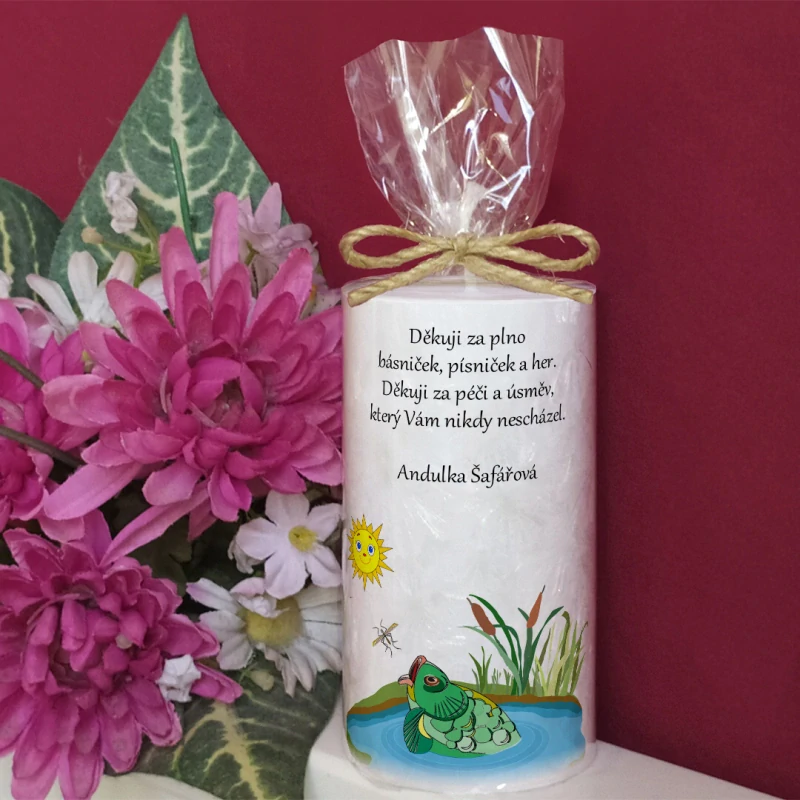 Vybírat můžete z několika textů. První tři textíky jsou mé rýmovačky pro učitelky, další jsou prostá věnování pro asistentku či pro kuchařku. Můžete mít ale i vlastní text. Připojit lze i podpis dítěte. Vybraný text zvolte výše v roletce a poté vložte svíčku do košíku.
