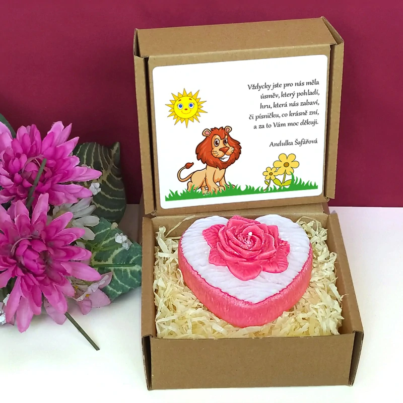 LEV I - svíčka SRDCE S RŮŽÍ pro paní učitelkuDo 4 pracovních dnů může frčet k Vám :)119 Kč